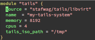 To make it easier to spin up a virtual machine with the latest tail environment I created a Terraform/OpenTofu module to spin up a virtual machine with the latest Tails version on libvirt.